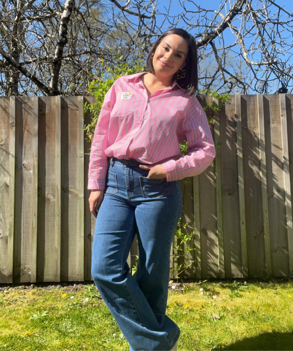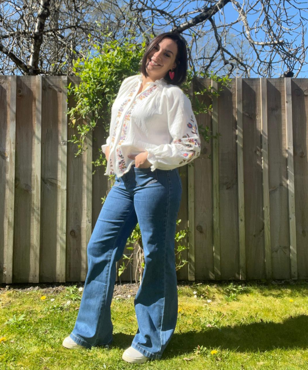 - la coupe Flare : ajustée à la taille et sur le haut de cuisse, pour un côté pattes d’eph’ après